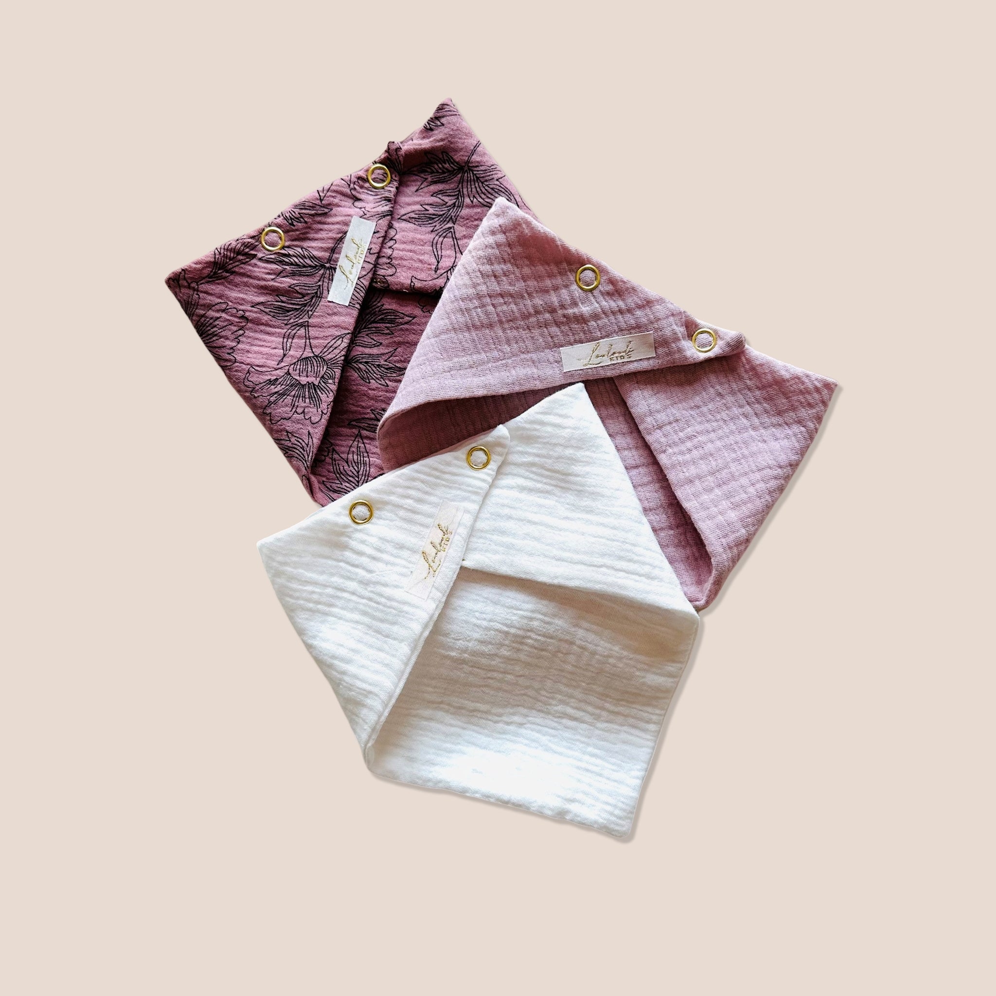 Entdecke unser Set aus 3 Stück Musselin Dreieckstüchern von Louloudi Kids. Unsere Halstücher sind aus Bio-Baumwolle, können personalisiert werden und bieten Ihrem einen natürlichen und bequemen Schutz. Perfekt für Babys und als Geschenk! Dank des atmungsaktiven und weichen Musselin-Materials sind sie auch ideal für empfindliche Kinderhaut. Ein Muss für alle Eltern!