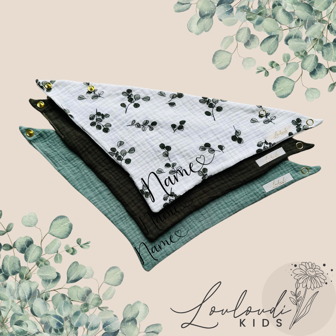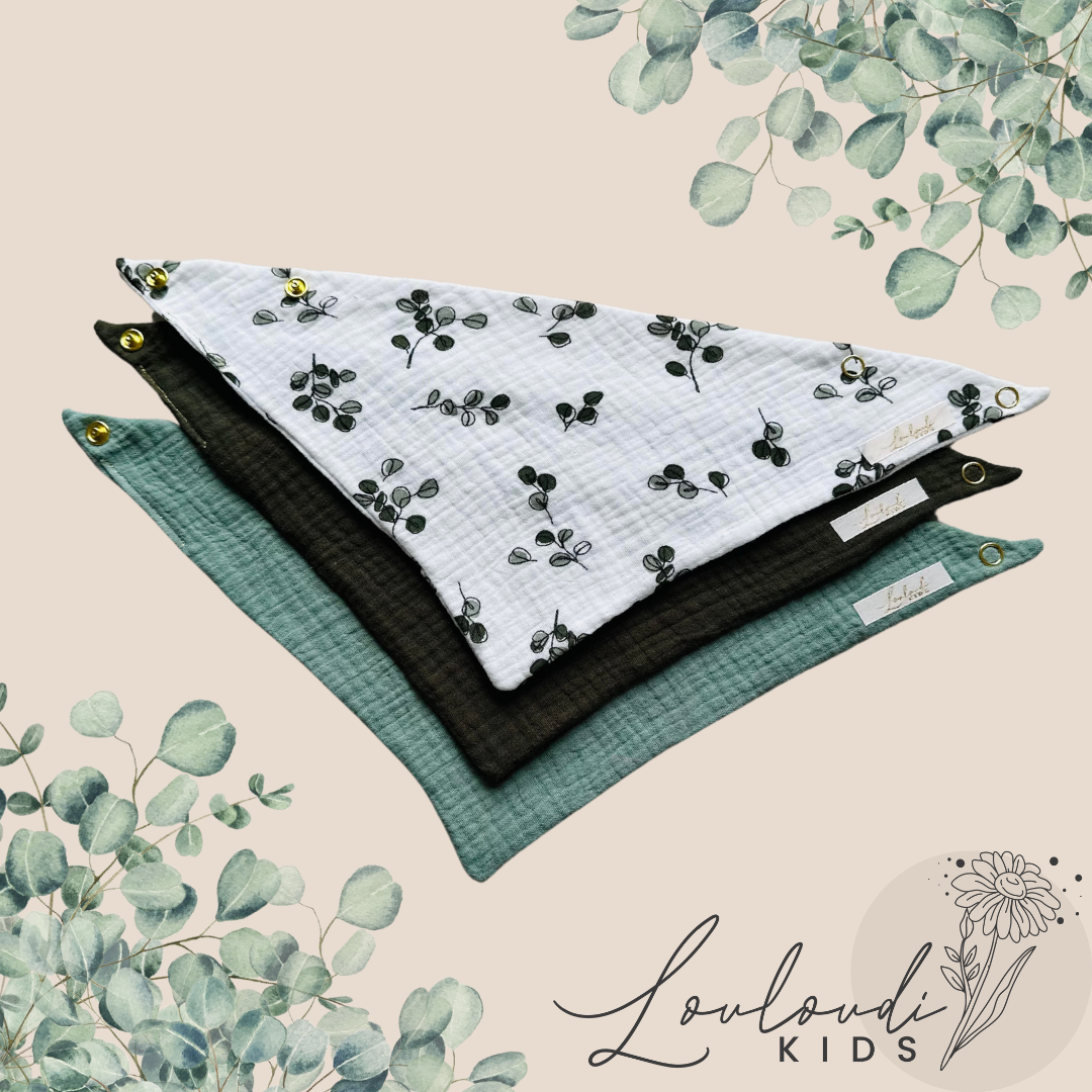 3er Set Baby Musselin Dreieckstücher Eukalyptus