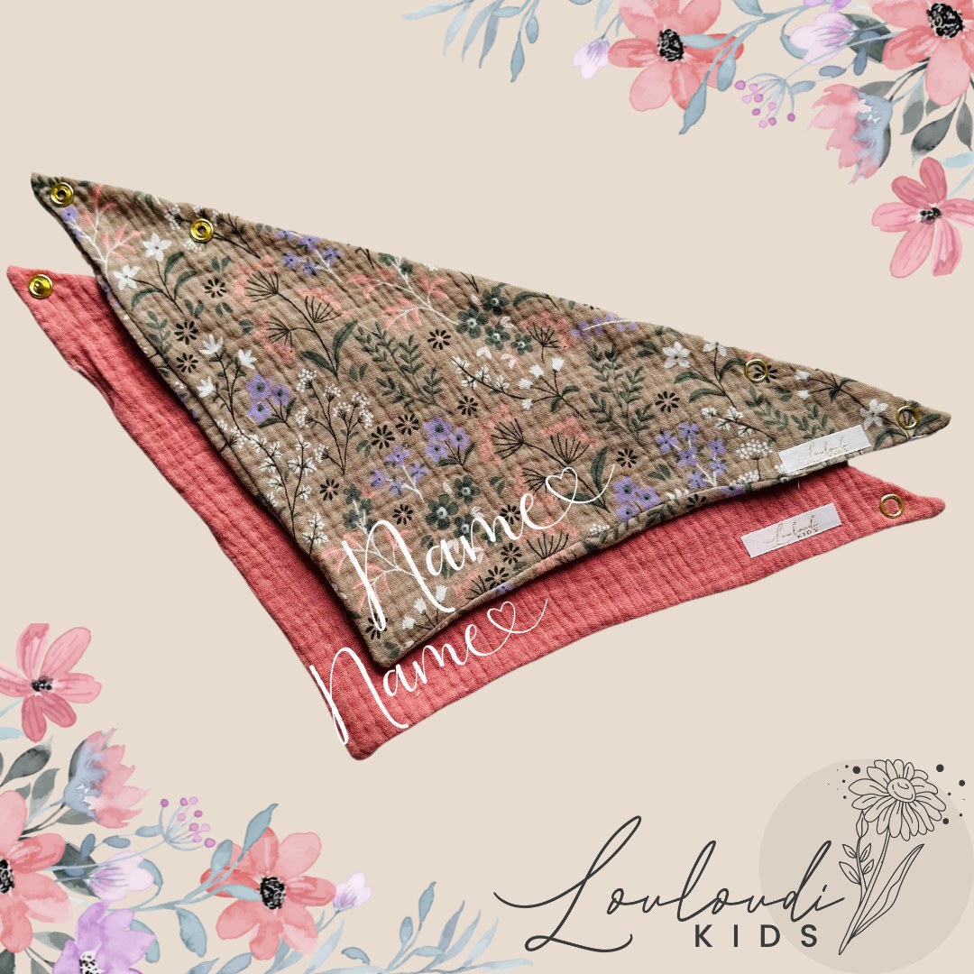 Entdecke unser Set aus 2 Stück Musselin Dreieckstüchern von Louloudi Kids. Unsere Halstücher sind aus Bio-Baumwolle, können personalisiert werden und bieten Ihrem einen natürlichen und bequemen Schutz. Perfekt für Babys und als Geschenk! Dank des atmungsaktiven und weichen Musselin-Materials sind sie auch ideal für empfindliche Kinderhaut. Ein Muss für alle Eltern!